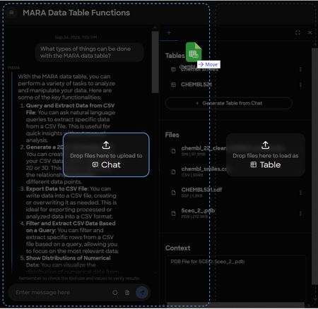 This is the primary interface for interacting with MARA. It is a chat interface that can help you analyze and reason about molecular data by constructing workflows of tools to achieve a specific goal.