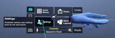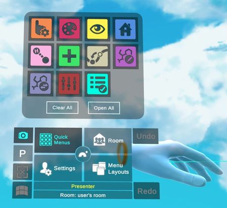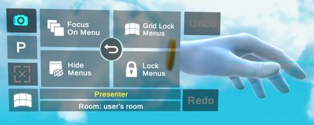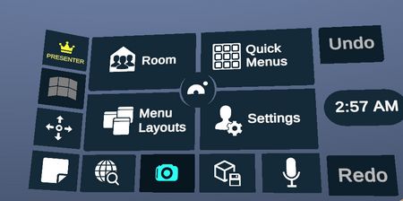 Wrist menu contains access to features independent from the content of the workspace such as quick menu access, room management.