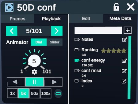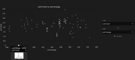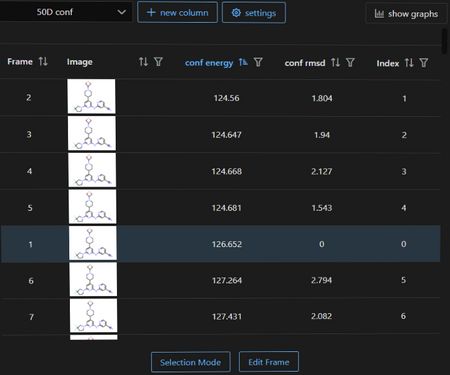 - The new entry of conformer frames has associated meta data of conformation energy and RMSD to seed ligand