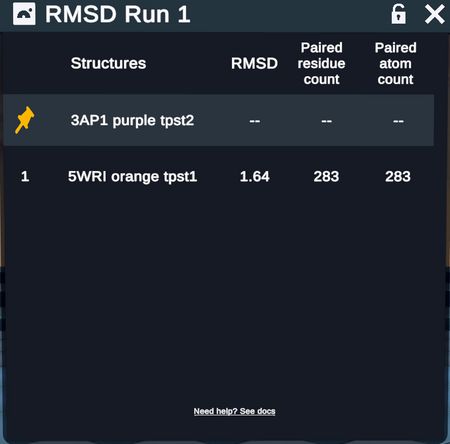 By default, the first entry is set as Fixed, and designated by the yellow pin. When selected as Fixed, the box under Moving will be inactive. To change this selection, select the pin next to the desired Fixed Reference protein.